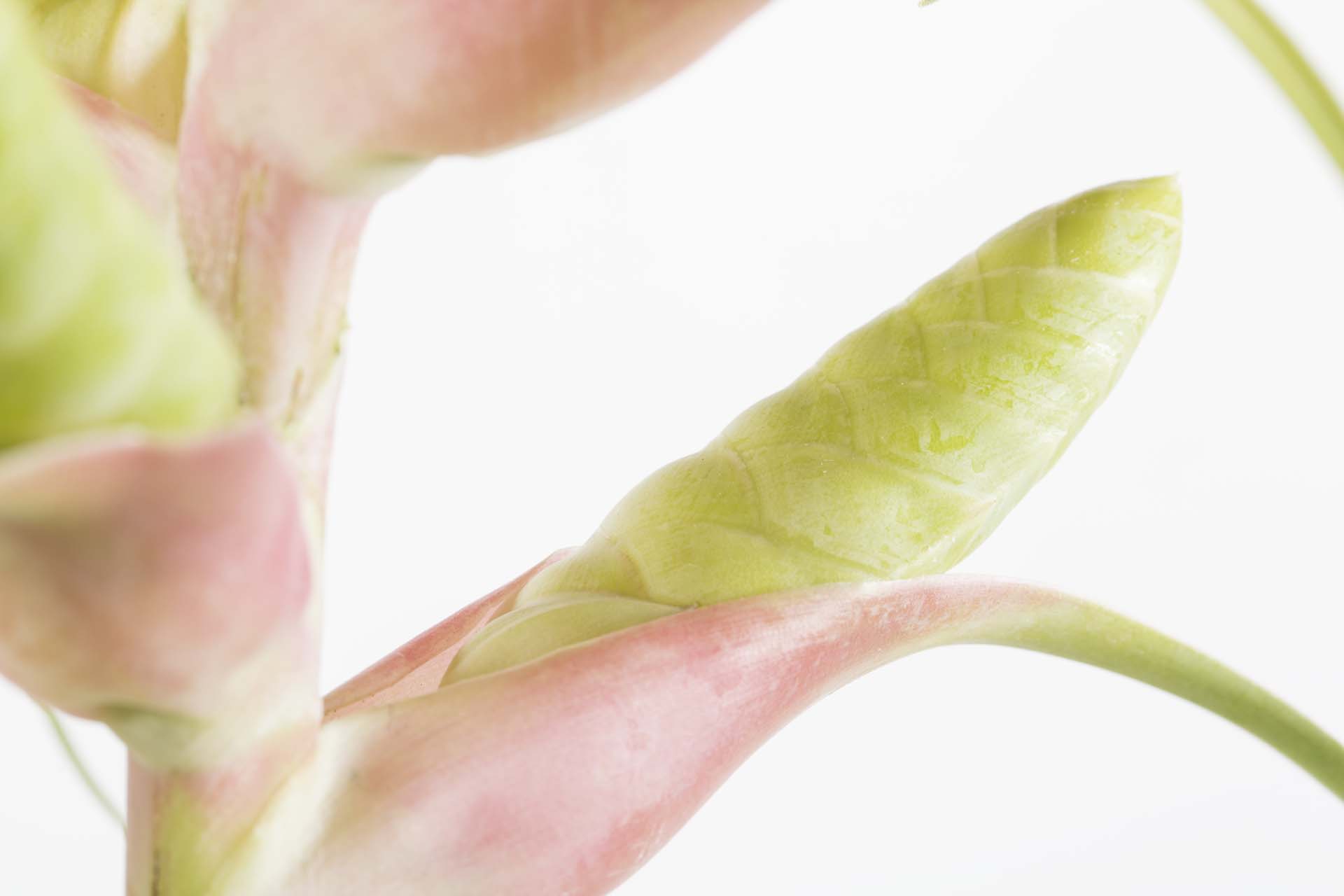Als je goed kijkt naar de groeivorm van het blad zie je dat het blad eigenlijk allemaal kleine glijbaantjes zijn die naar het hart toe lopen. De glijbaantjes vangen het regenwater perfect op vanwege de groeistand en zo loopt het water over het blad het hart van de plant in. Het hart van de plant moet altijd vochtig zijn. Als je in je Tillandsia plant kijkt en er staat een laagje water in het hart dan gaat het goed met hem!