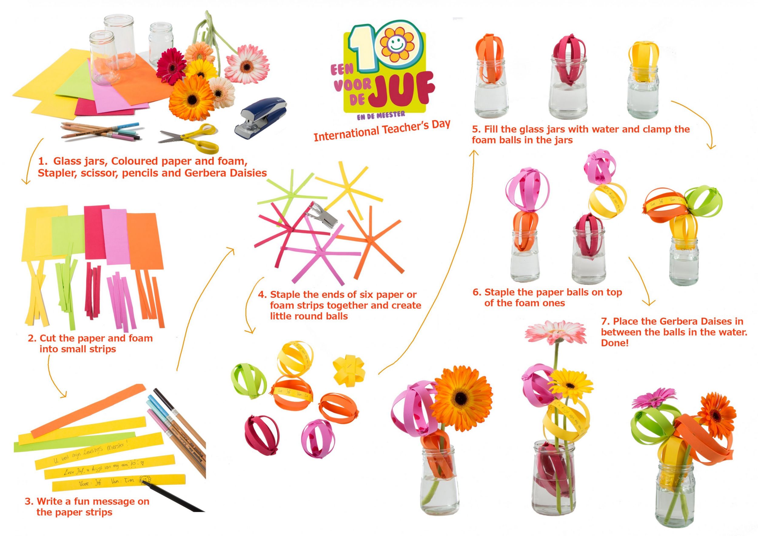 International Teacher's Day is the perfect occasion to thank your teacher for his of her cool stories, fun lessons and support! As a florist it's an opportunity to create sweet floral gifts for kids to give or to let them create something in your shop themselves. Here's one fun idea for kids to create.