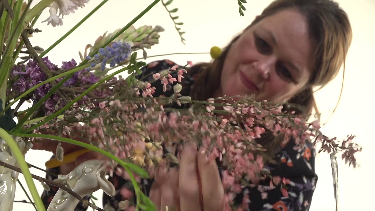 Dutch floral designer Inge Quint shows how to create a fragrant centrepiece with impact! Choosing an antique vase as her base, Inge Quint continues to carefully fill it up with a large variety of wonderfully fragrant spring flowers such as Freesia, Tuberose, Hyacinth, Muscari, Lilac, Matthiola and Genista. This scented spring flower arrangement will definitely turn heads and invite people to have their sniff of spring! Everyone loves the scent of spring.