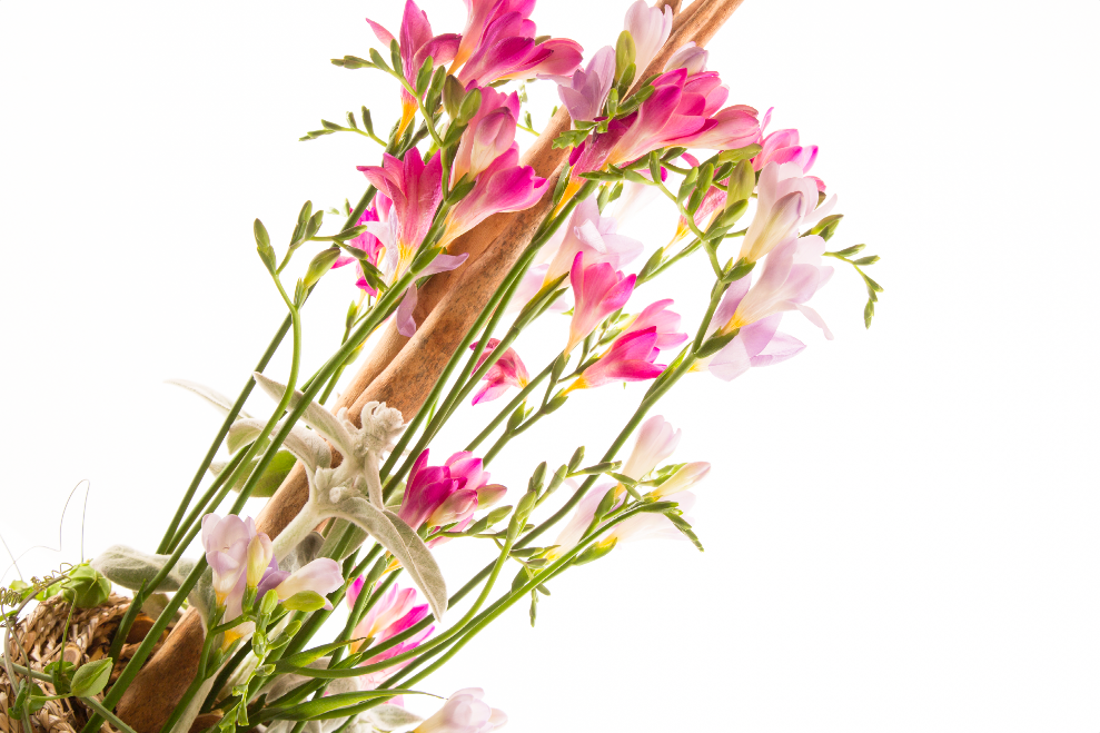 Nelleke Bontje uses sweet smelling Freesias 'Pink Passion' and 'Bohemian' in this lovely flower arrangement.