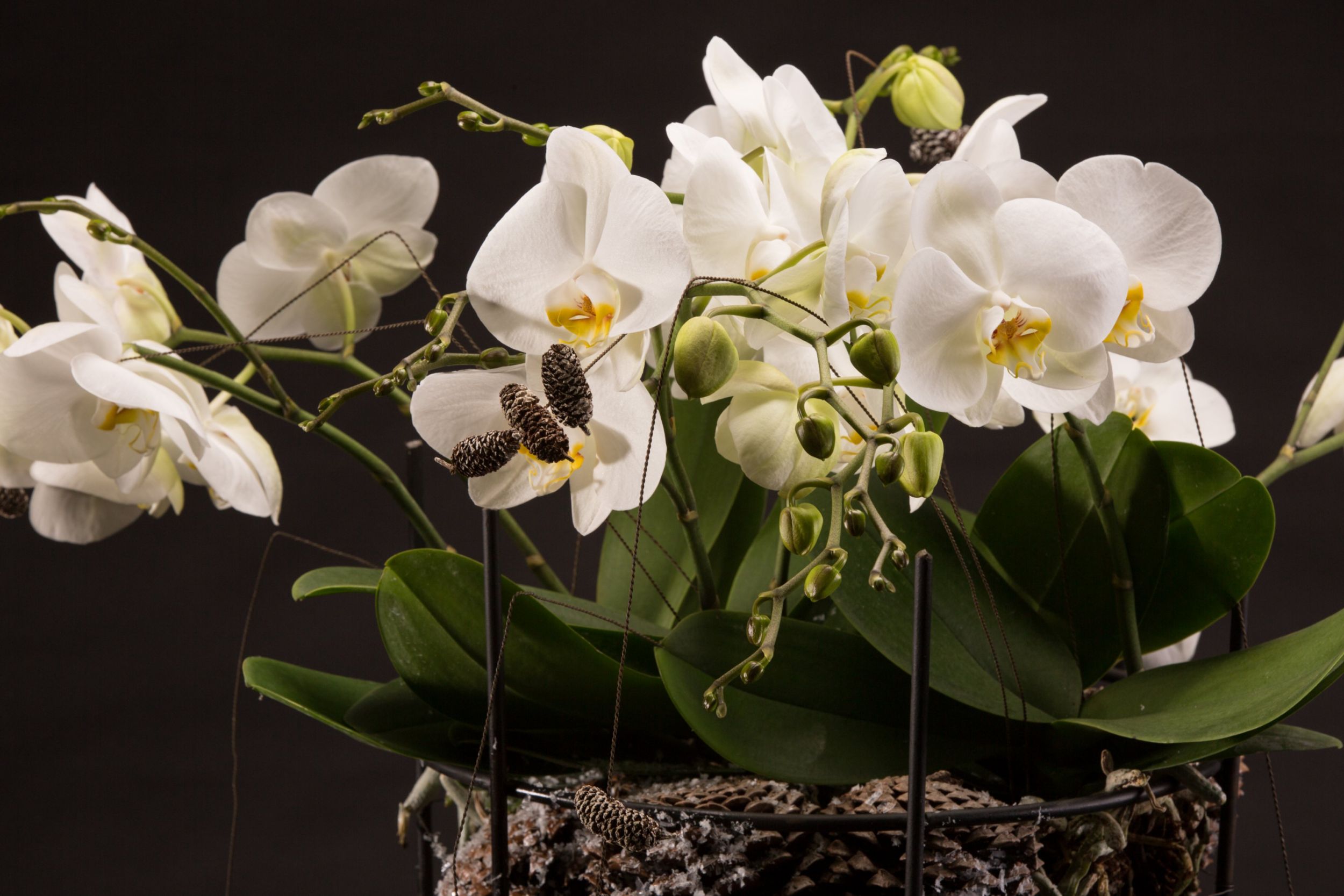 Wintery plant arrangement idea with Phalaenopsis by Roos van Unen. The 'Tablo' orchid from Opti-flor makes a lovely present for Christmas or wintertimes, especially when it is presented in such a wonderful way!