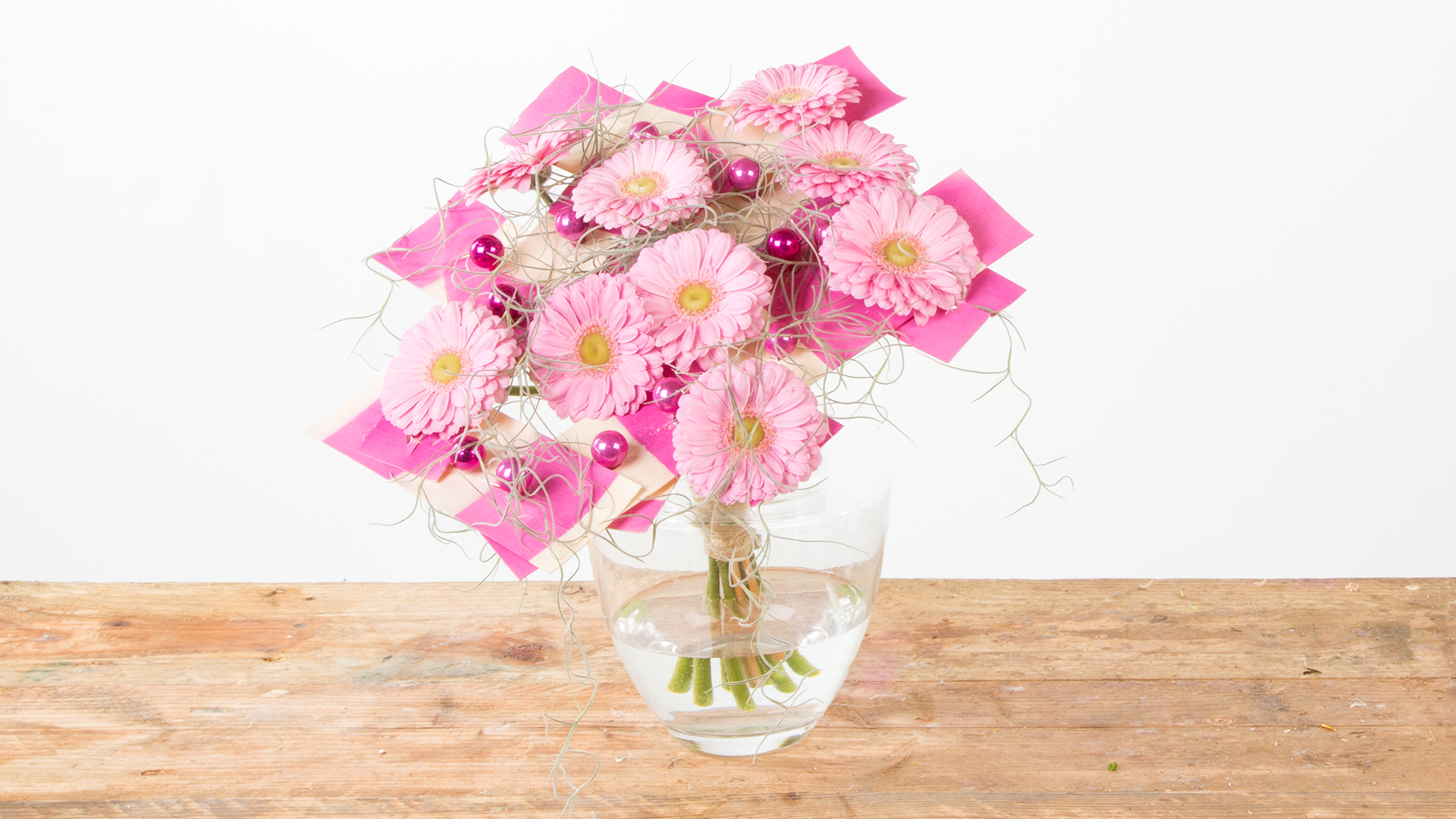 Pim laat zien hoe je met fineerhout een frame kunt maken. Met de gerbera's van Holstein Flowers wordt het meteen een zoete Kerst.