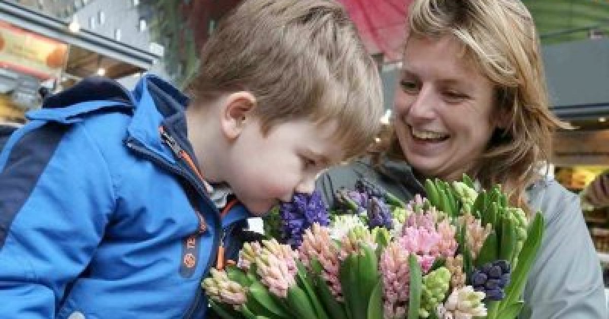 Het is volop lente in de Rotterdamse Markthal, waar jong en oud door bloemiste Gerdien van Olphen, van Kas Vers Geplukt, verrast werden met een zee van geurende hyacinten.