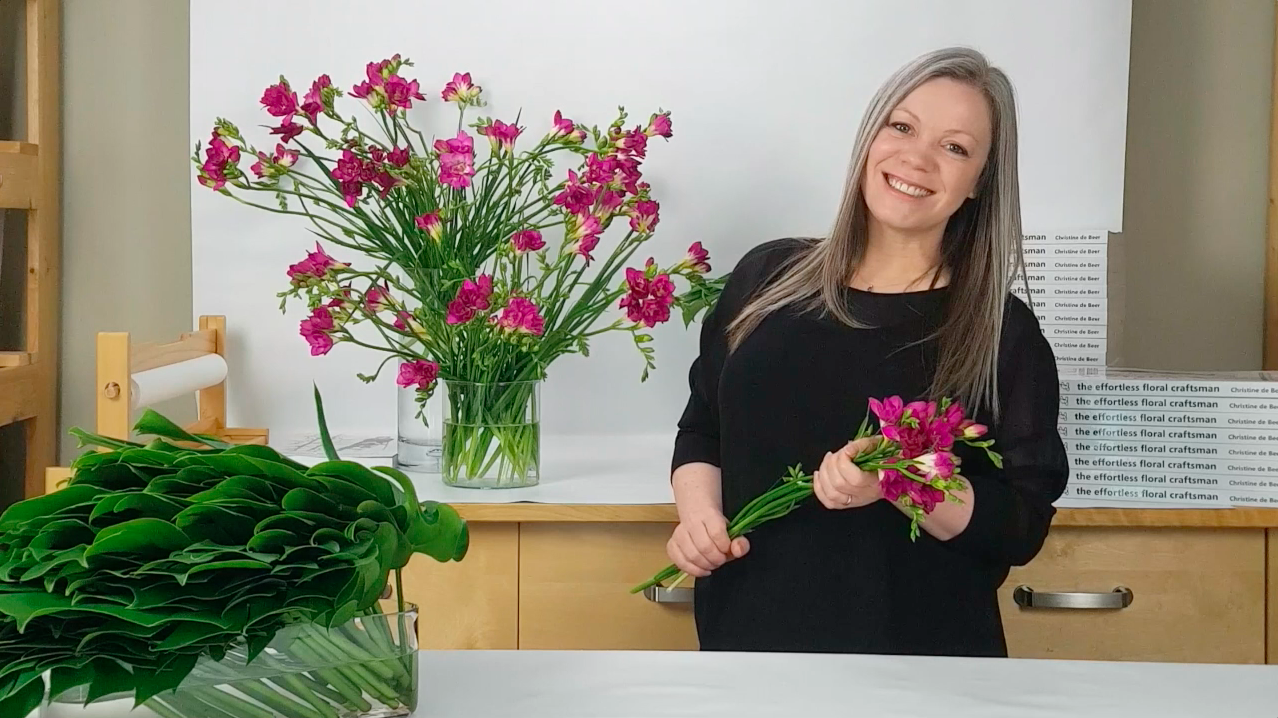 De Canadese bloemsierkunstenaar Christine de Beer deelt haar kijk op de Freesia met dit design in Ikebana-stijl. Dit voorbeeld laat wederom zien hoe veelzijdig de Freesia is! Geïnspireerd? Laat ons jouw #FreestyleFreesia idee zien!