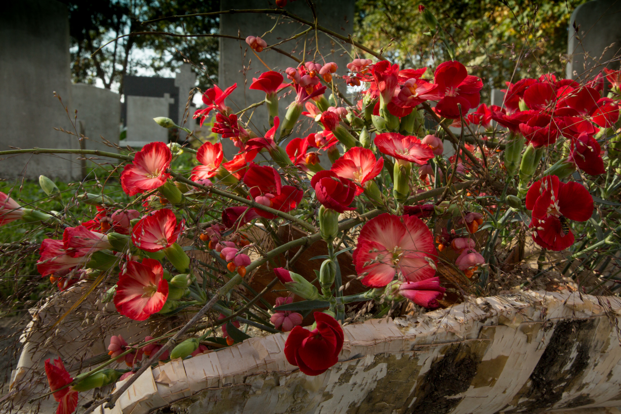 Pim van den Akker laat je een voorbeeld zien van een rouwstuk waarin hij de Sparkz variëteiten Solomio® Clif en Solomio® Cris van HilverdaKooij gebruikt. Ze lijken misschien fragiel, maar deze bloemen zijn juist heel sterk en blijven lang mooi. Wanneer je een rouw arrangement maakt is het belangrijk om na te denken hoe je hier symbolische lagen in kunt aanbrengen. Het gebruik van felle kleuren en de berkenschors zorgt voor een sterke symbolische mix.