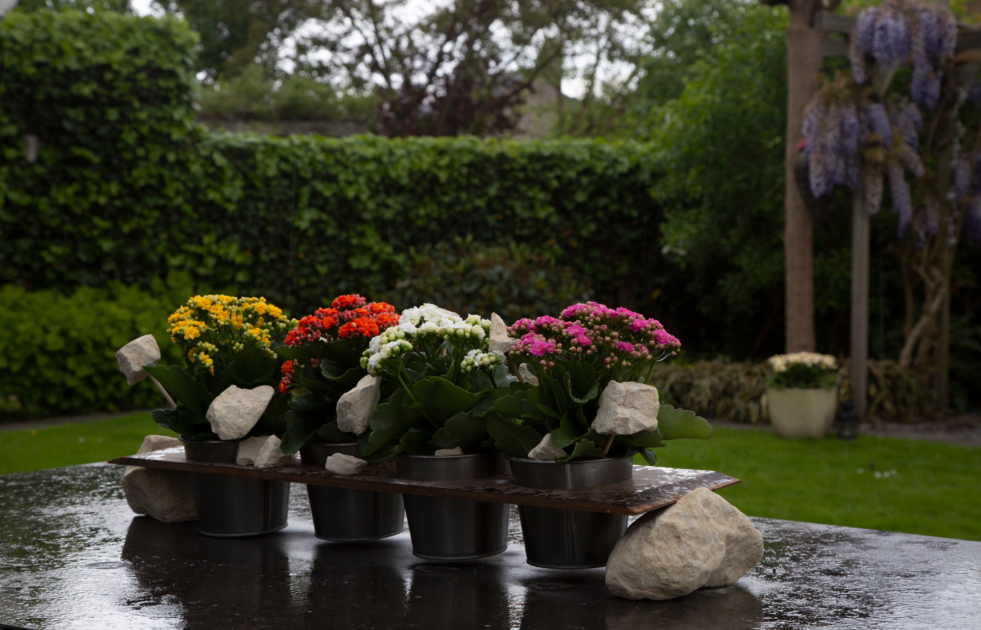 Buitentafeldecoratie met Kalanchoë