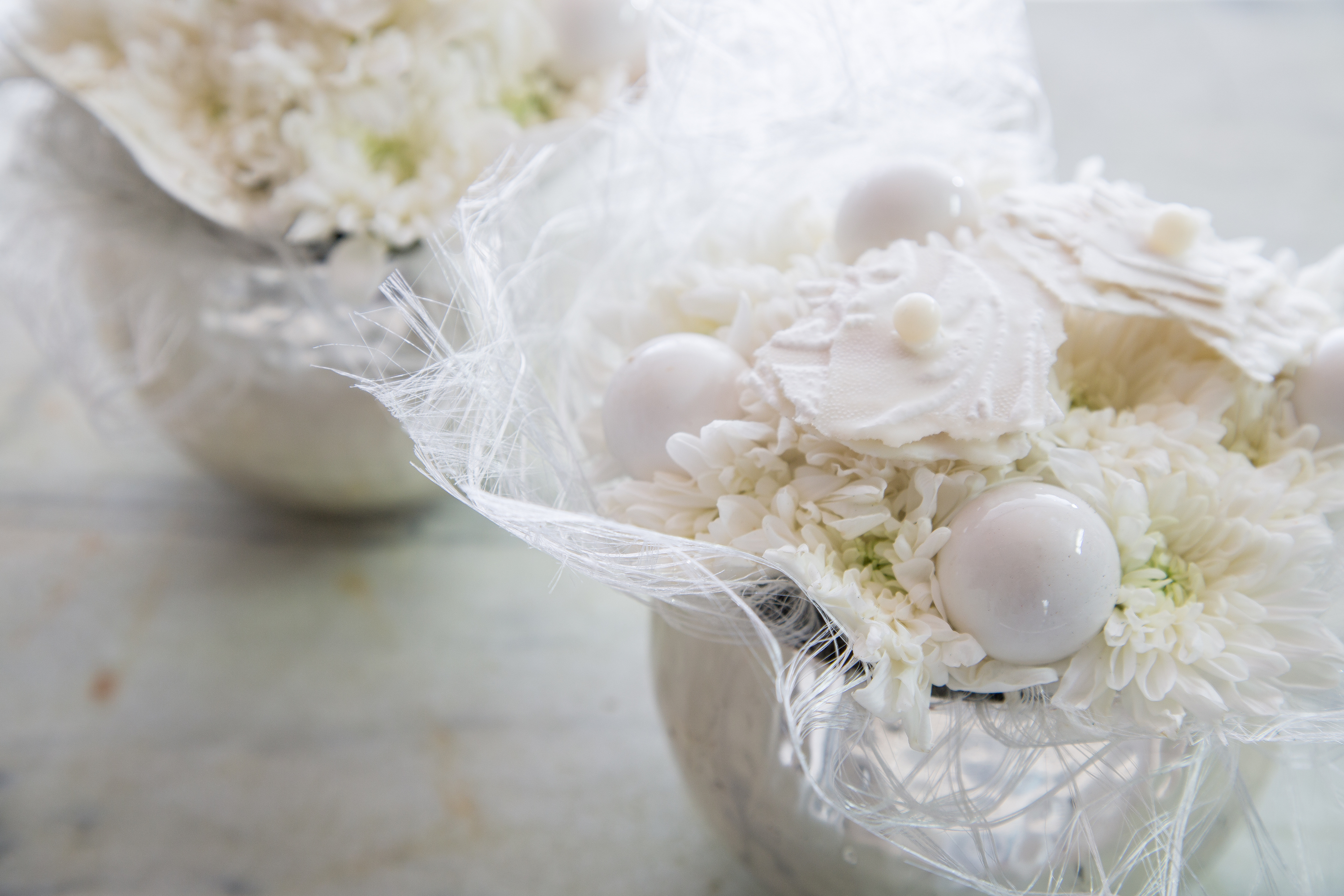 Deze mooie Chrysanthemum 'Baltica' staat prachtig in dit winterse tafereel. Gecombineerd met kleine stukjes behang, kleine kerstballetjes en stukjes decoratiedoek. Geïnspireerd op het Zentoo winter moodboard!