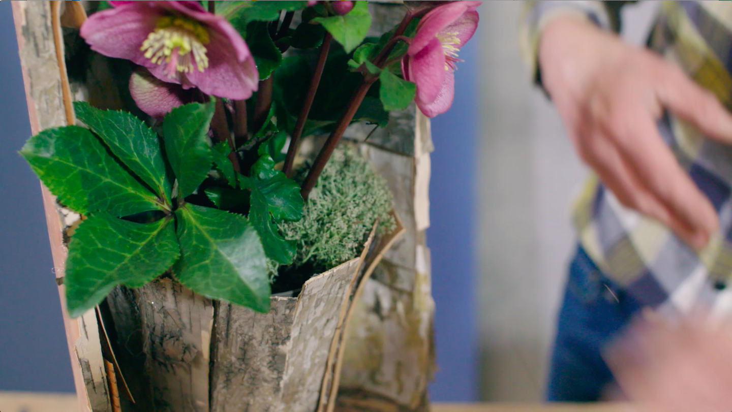 David Ragg maakt een bijzonder design voor de prachtige Helleborus 'FrostKiss'. Een ontwerp die je aan de muur kunt hangen of op een buitentafel kunt plaatsen. Waar je deze ook neerzet, door de hoogte van het ontwerp heb je altijd mooi zicht op de bloemen. Een gaaf idee om kleur aan je winterse tuin, balkon of terras te geven.
