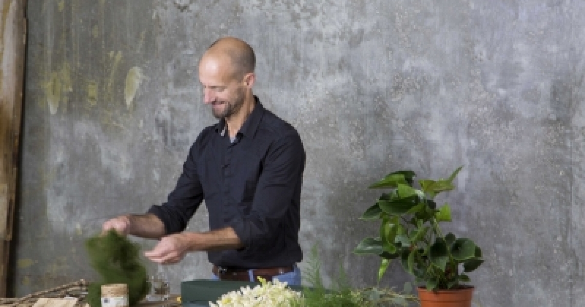 Eenmaal mijn tranen van het lachen gedroogd, zegt hij "Maar serieus, ik vind het mooi om afscheidsbloemwerk maken, juist vanwege het persoonlijke tintje wat mensen er aan toe willen voegen. Soms vragen ze me om er objecten in te verwerken die voor hen heel betekenisvol zijn. Of om specifieke bloemen te gebruiken die ook in de tuin van de overledene groeide. Zelf houd ik erg van de natuurlijke stijl; sprookjesachtig met wilde bloemen of een ontwerp met een tuin-gevoel. Bloemen zijn nou eenmaal de meest effectieve manier om je gevoelens en medeleven te uiten", besluit David.