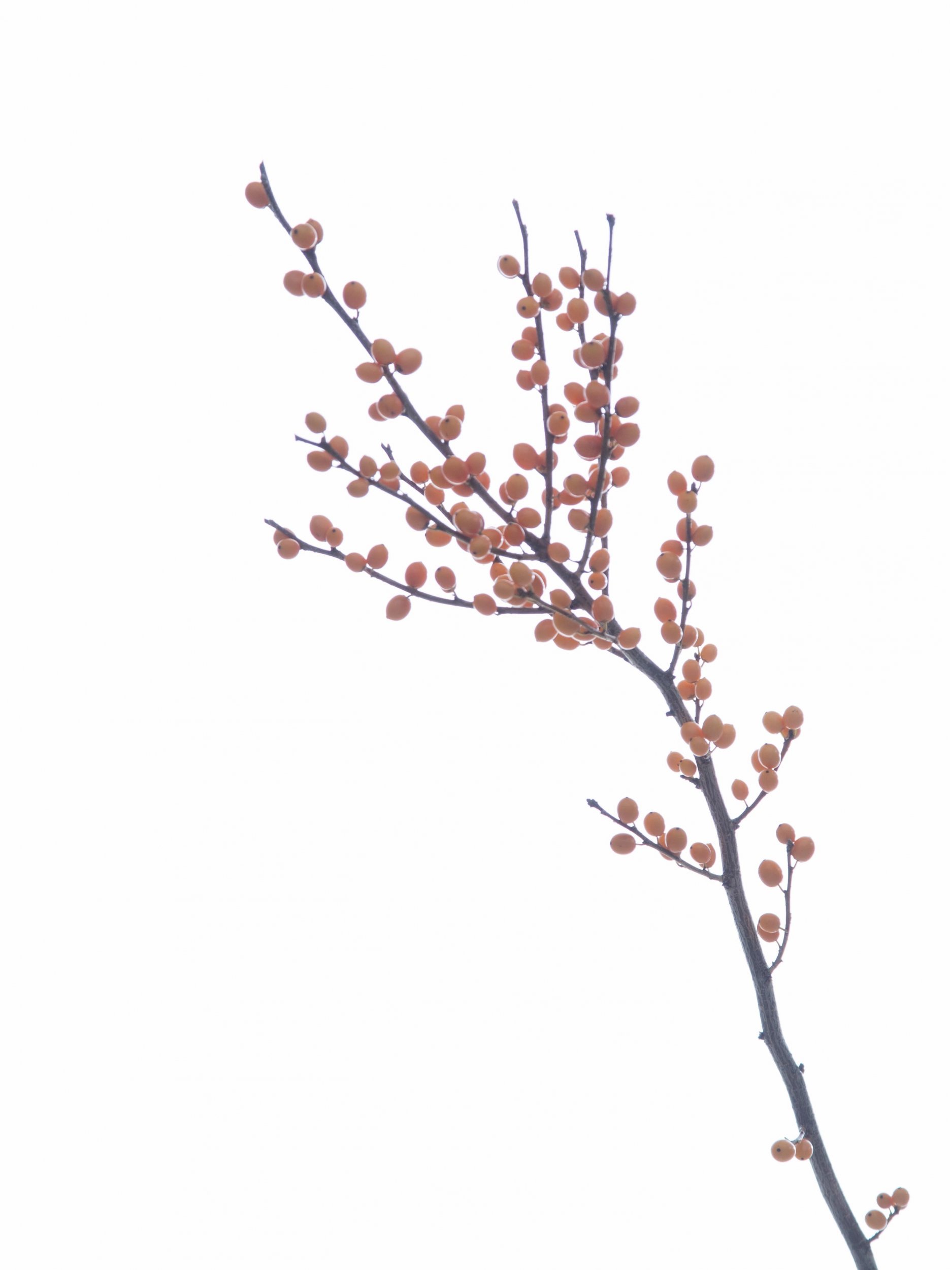 Aan het eind van het herfstseizoen laat de struik zijn blad vallen en komen de rode bessen mooi tevoorschijn.