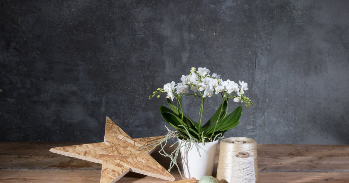 Roos van Unen maakte een prachtig plantenarrangement met een weelderig bloeiende Phalaenopsis ‘Boquetto Beauty’ van Opti-flor. Aangezien deze orchidee weken achtereen bloeit, is het een design waar je tot ver na de feestdagen plezier van hebt!