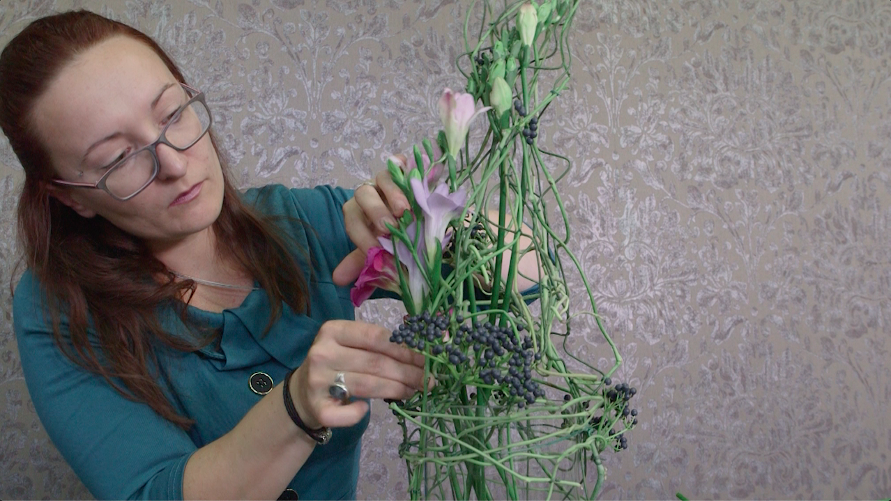 Franse bloemist Audrey Gatineau van Les fleurs de Florofka laat zien hoe ze een conische basis maakt van plantaardig materiaal, die dient als basis om Freesia's tussen te weven. Gaaf en helemaal #FreestyleFreesia!