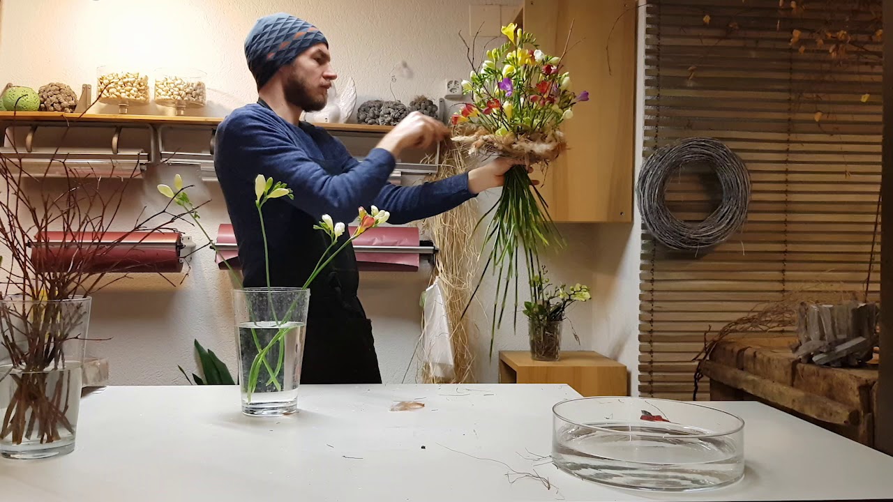 Een speels #FreestyleFreesia design door de Zwitserse floral designer Tobias Kopp van Flora-Line. Hij maakte een vogelnest als basis met natuurlijk wat veertjes en veel vrolijke gekleurde en geurende Freesia. Dit kleurrijke #FreestyleFreesia design brengt je in lente sferen.