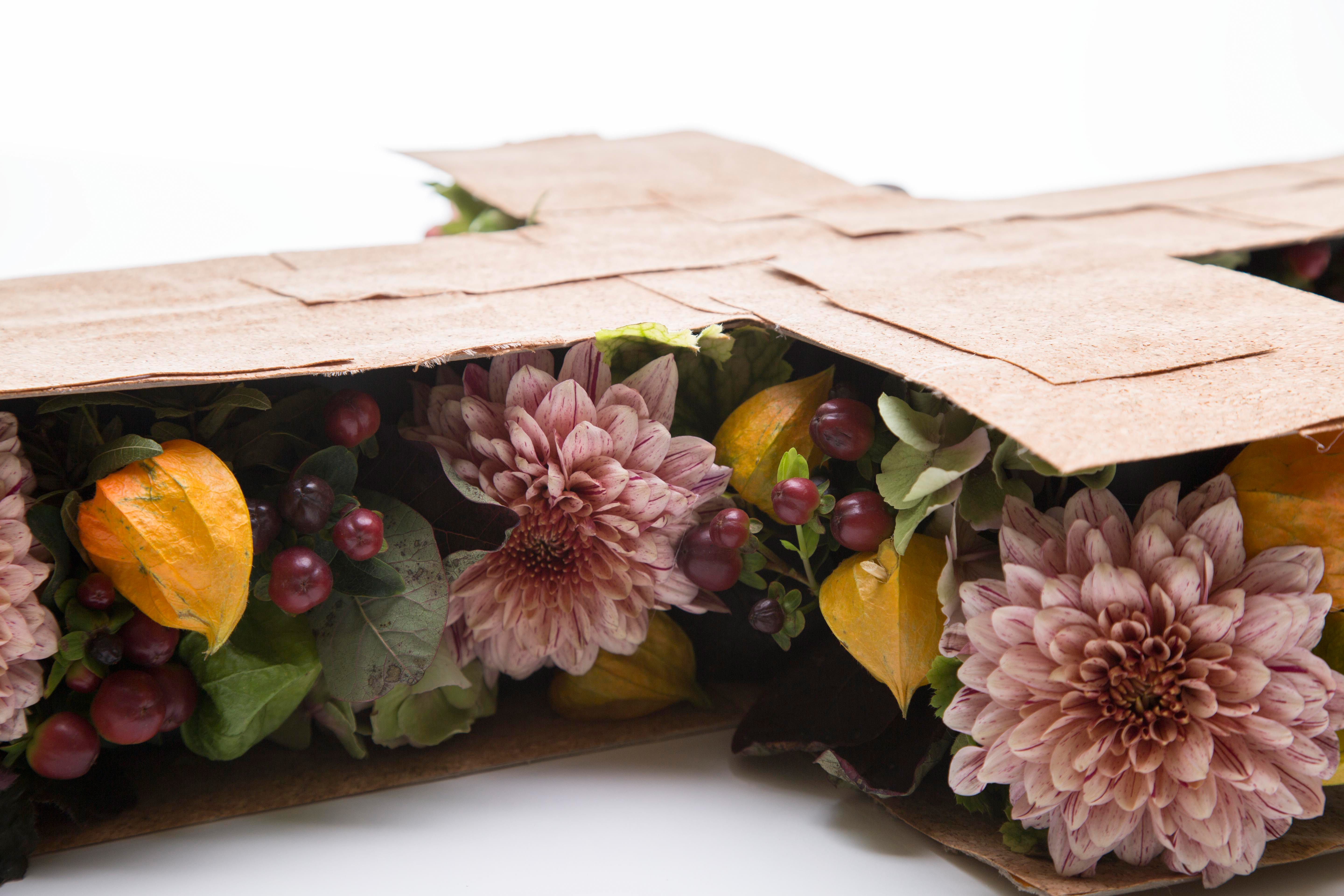 Een klassieke vorm maar door materiaal en kleurgebruik heel eigentijds. Bea Beroy maakte een rouwwerk in de vorm van een kruis. Ze gebruikte hiervoor kurk en 'vulde' het op met 'Pip Salmon' Chrysanten, Hypericum, Hortensia en Physalis. De 'How to make' video volgt binnenkort!