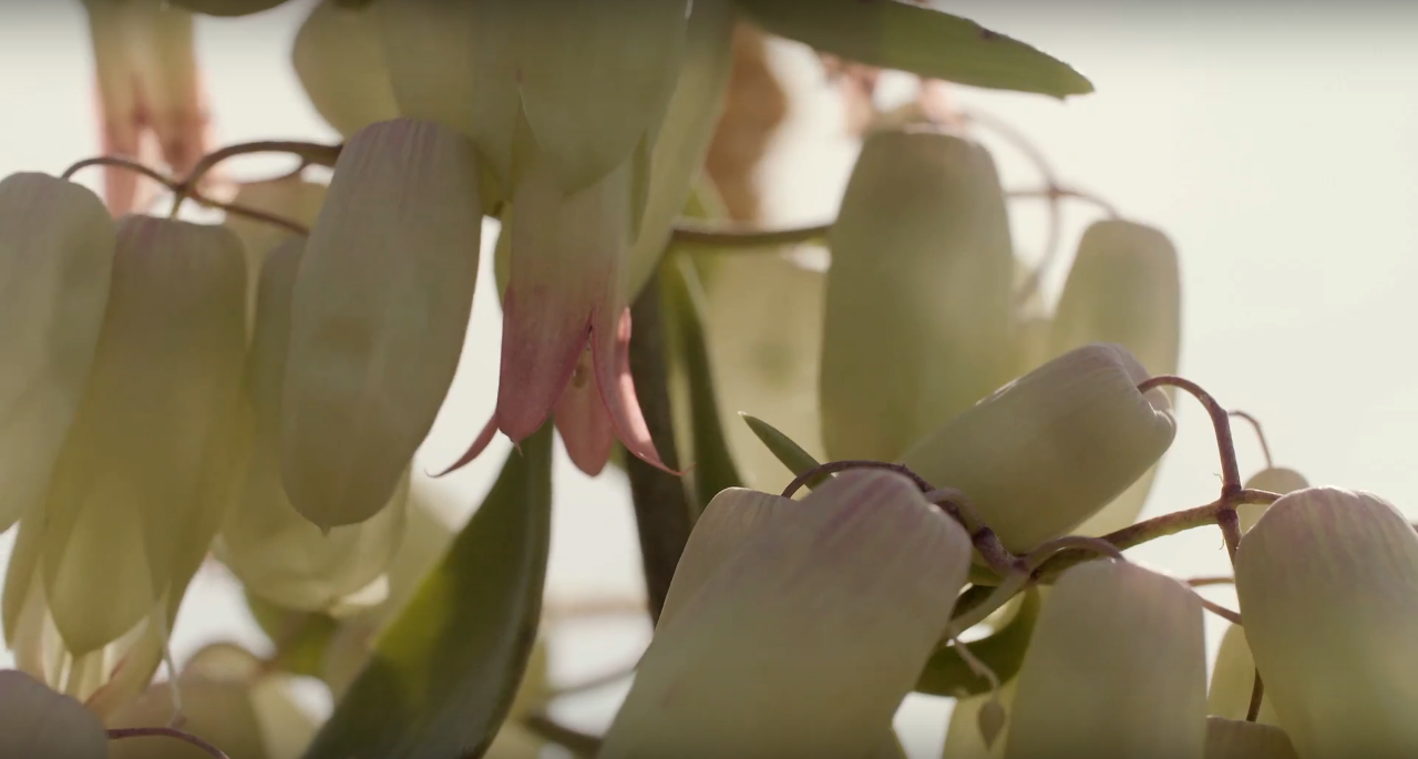 Voorbeeld van een bijzonder plantenarrangement van David Ragg! Een speciale plant verdiend een speciale pot. Deze 'designer' Kalanchoë 'Bell' heeft bleekgroene trosjes lantaarn-achtige bloemen die aan het einde van de stelen bungelen. Om deze bijzondere plant te complimenteren, gebruikt David bijpassende kleuren en zachte materialen in dit ontwerp.