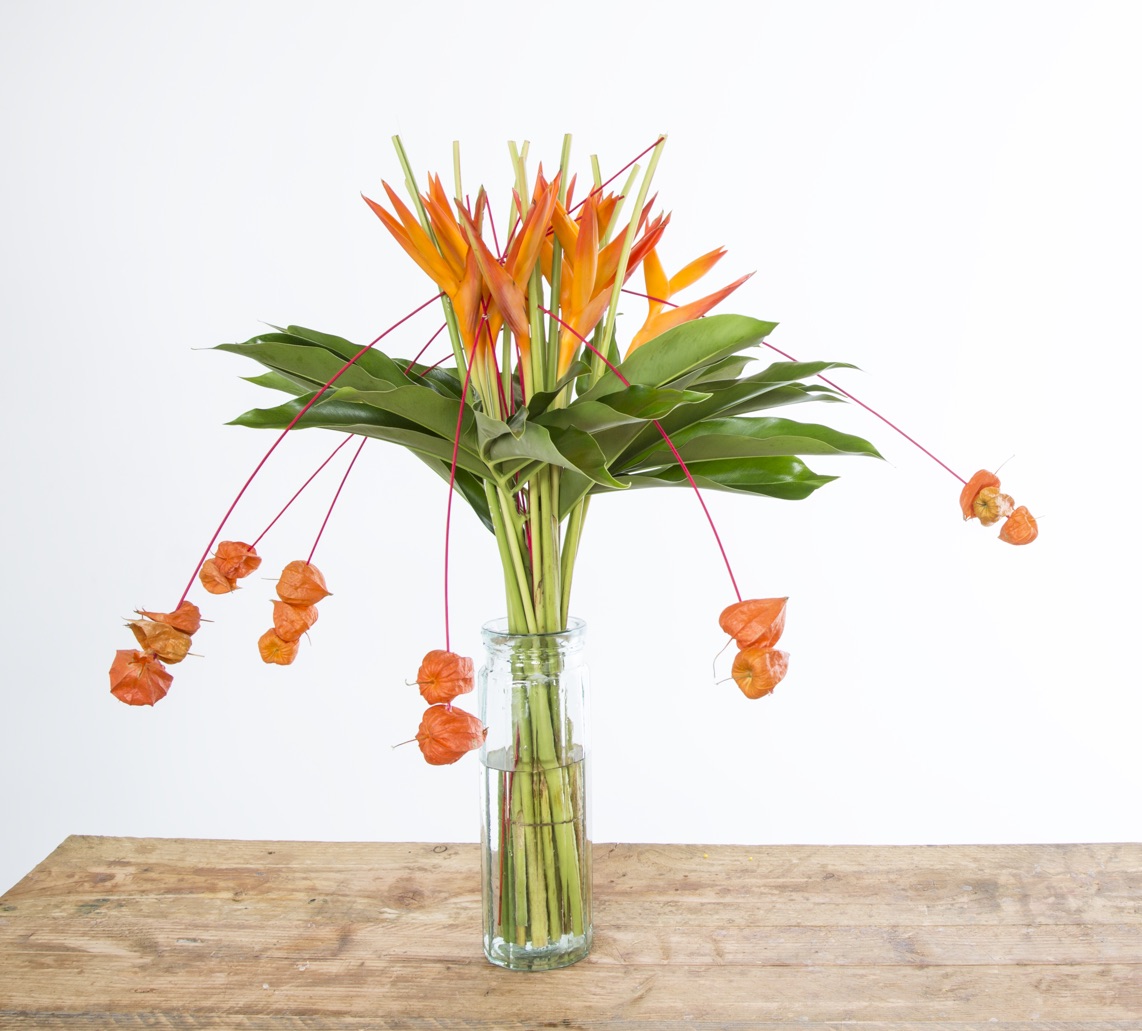 Boeket met tropische Heliconia's