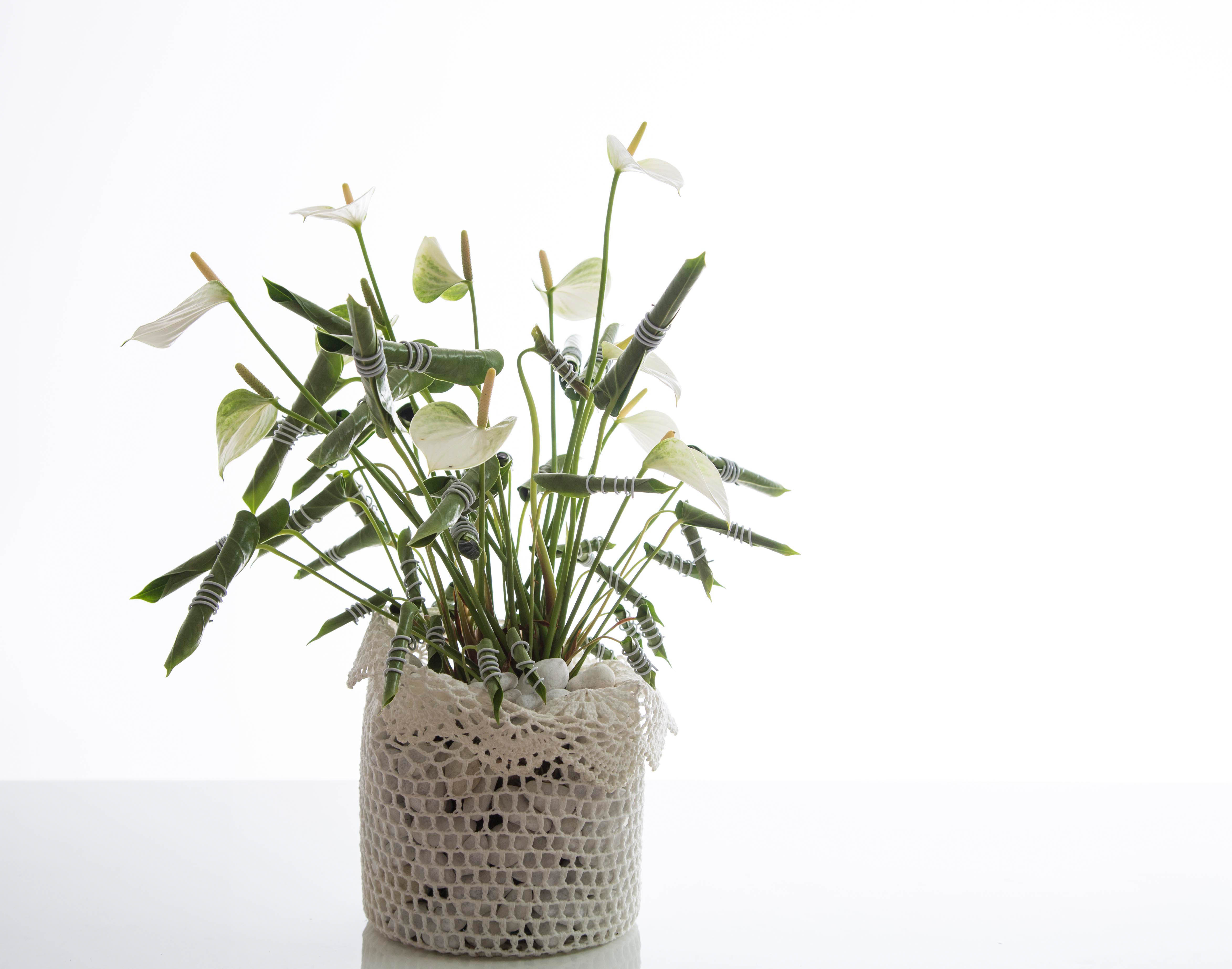 Waarom je Anthurium niet eens anders stylen? Grappig idee om (een aantal) bladeren in de krulspelden te zetten ;)