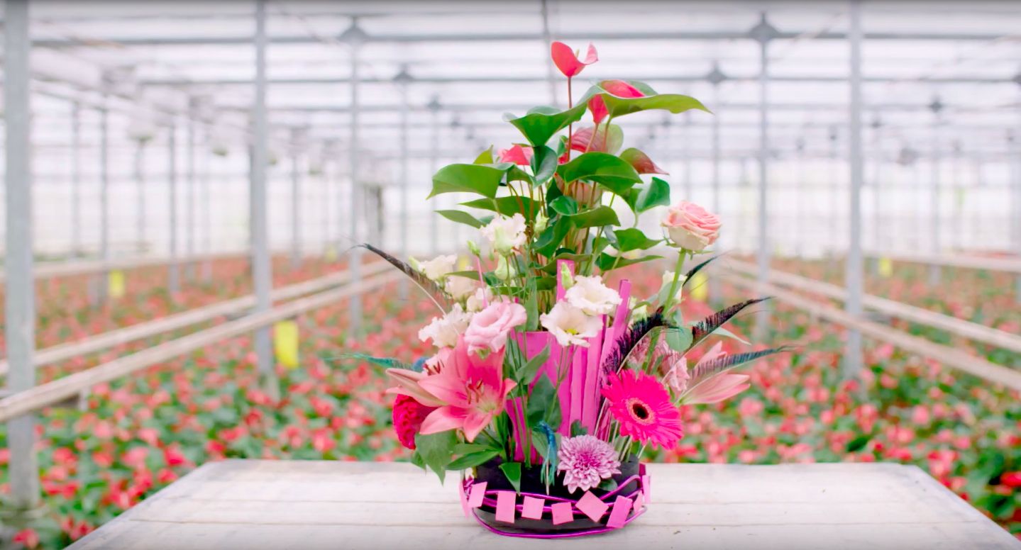 Een extra speciaal arrangement voor Moederdag! Hoewel de Adios Anthurium plant 'Dynamite' al veel bloemen van zichzelf heeft, kun je moeders niet genoeg verwennen. Daarom heeft Nelleke Bontje de Anthurium plant in het middelpunt van het design gezet en daar omheen gewerkt met verse snijbloemen in OASIS® Black Ideal steekschuim. Een bloemrijke verrassing!