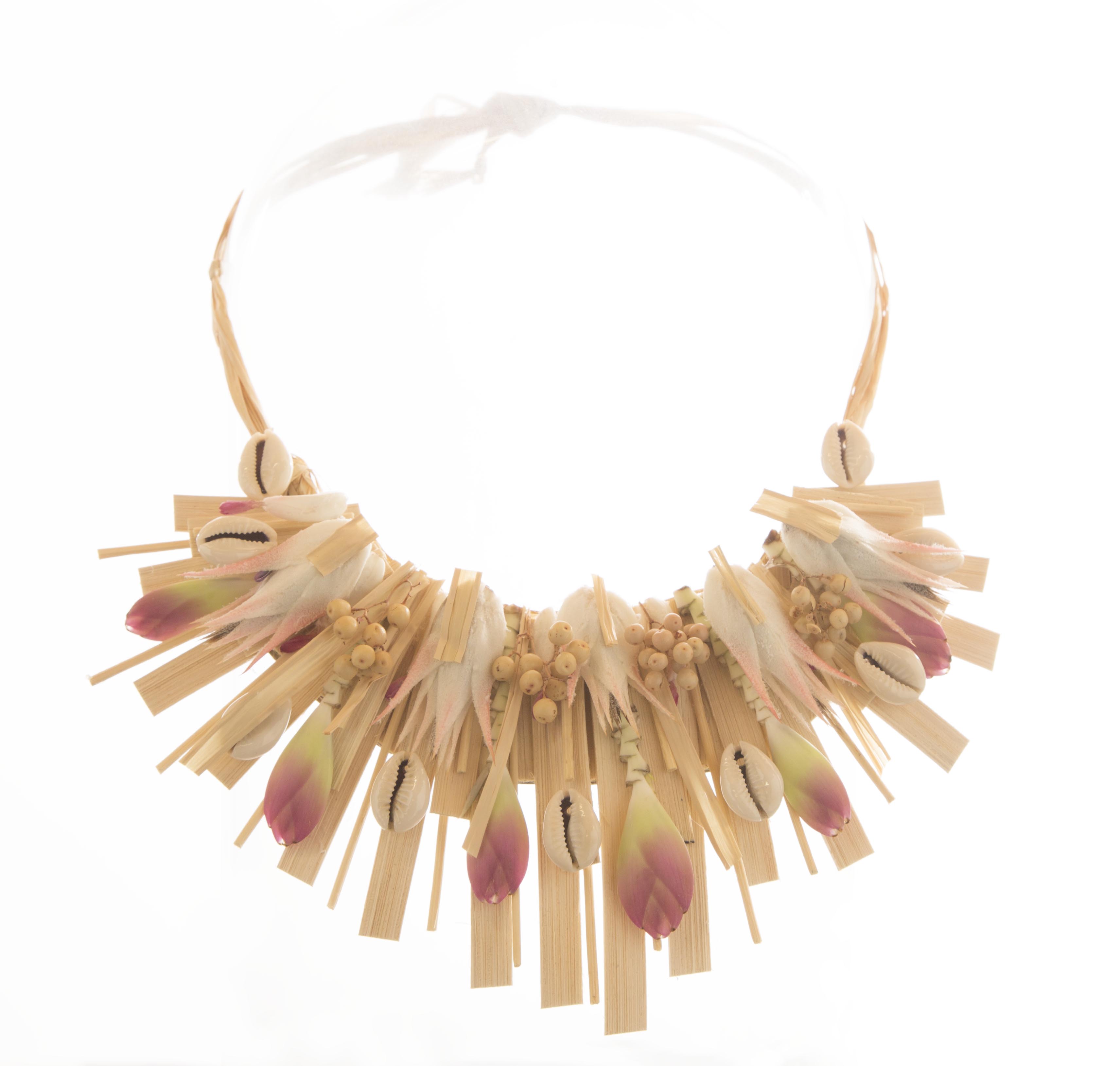 Roos van Unen gebruikte stukjes Tillandsia en Achmea Primera bloemen voor haar bloemenketting. Prachtig in combinatie met een zomerse jurk!