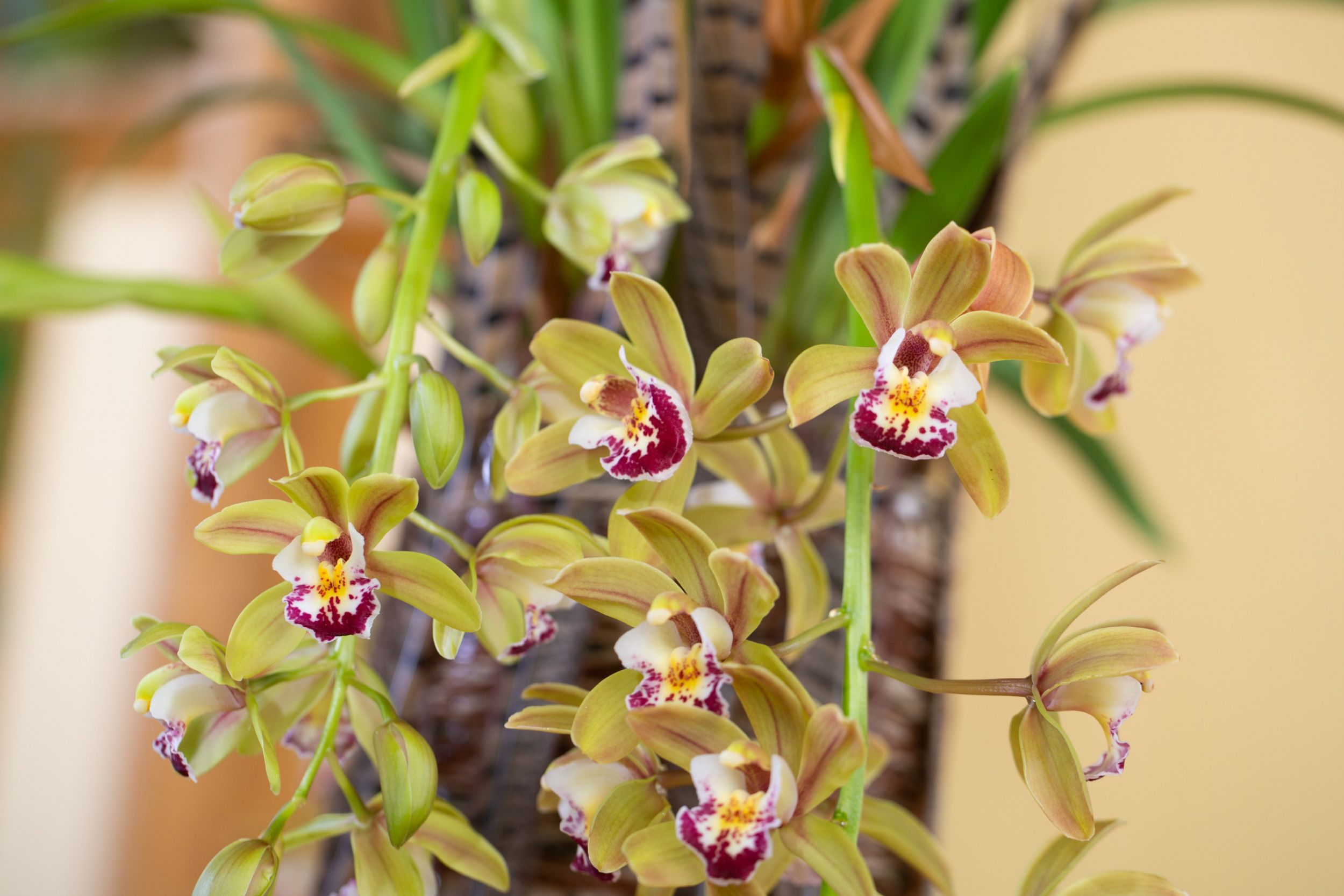 Roos van Unen maakte met de Cascade Cymbidium 'Argiro' van LZ Orchidee een fris en natuurlijk plantenarrangement wat mooi staat in elk interieur. De plant is in een simpele transparante vaas met drijfhout op de bodem geplaatst die opgemaakt is met fazantenveren aan de zijkant wat voor een natuurlijk effect zorgt. De Cascade Cymbidium is een waar juweeltje!