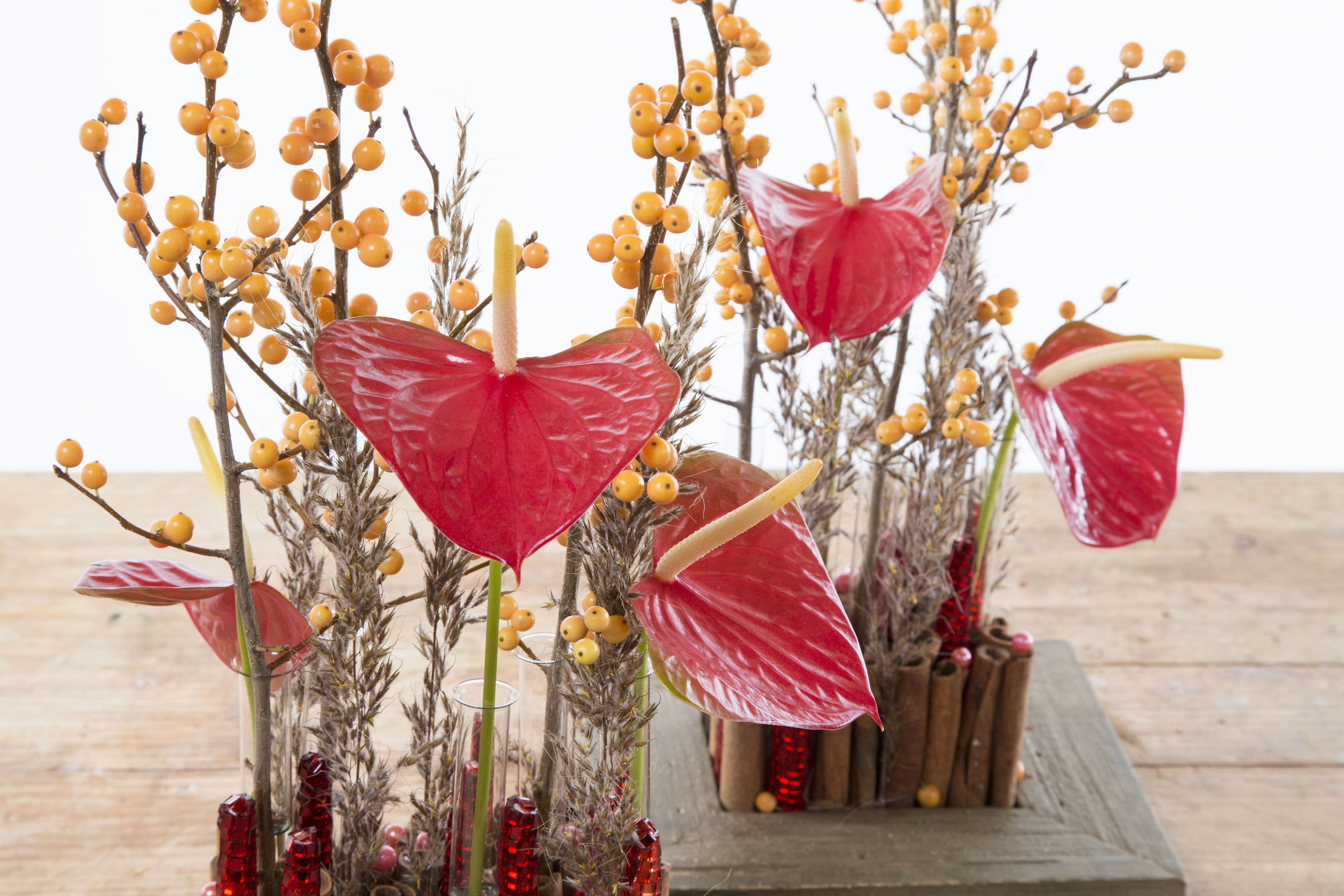Kerstarrangement met Anthurium en Ilex
