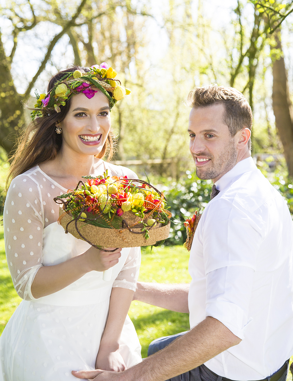 Kleurrijk boeket en bijpassende hoofdtooi