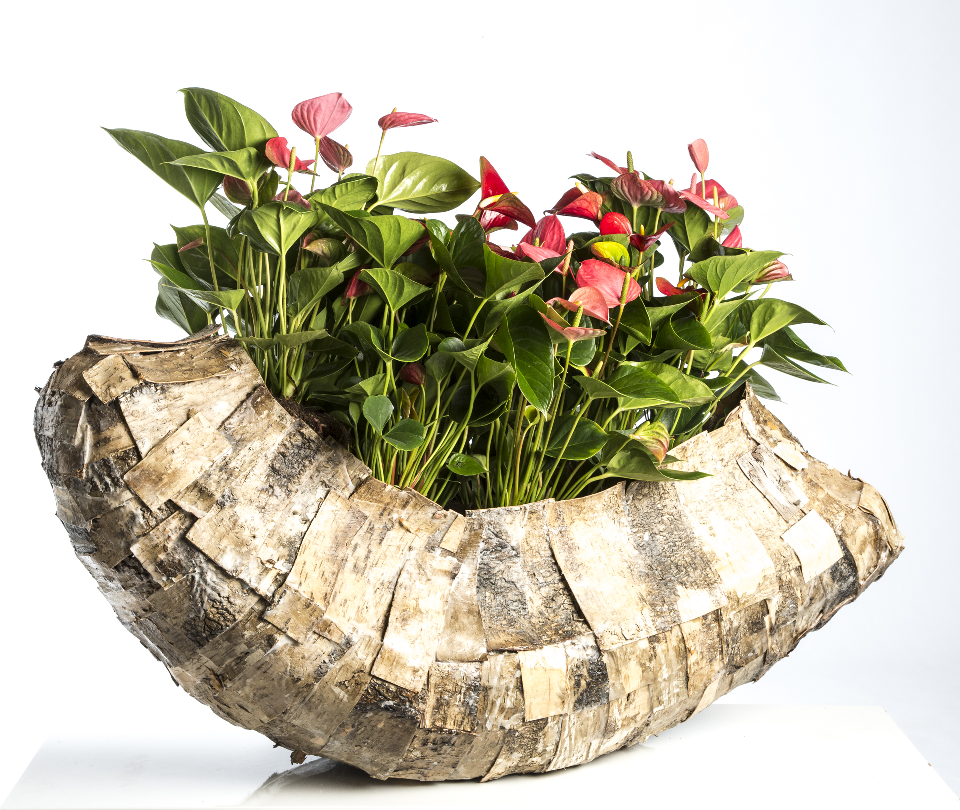 Pim van den Akker creeerde een coole basis en vulde deze rijkelijk met Adios Anthuriums.