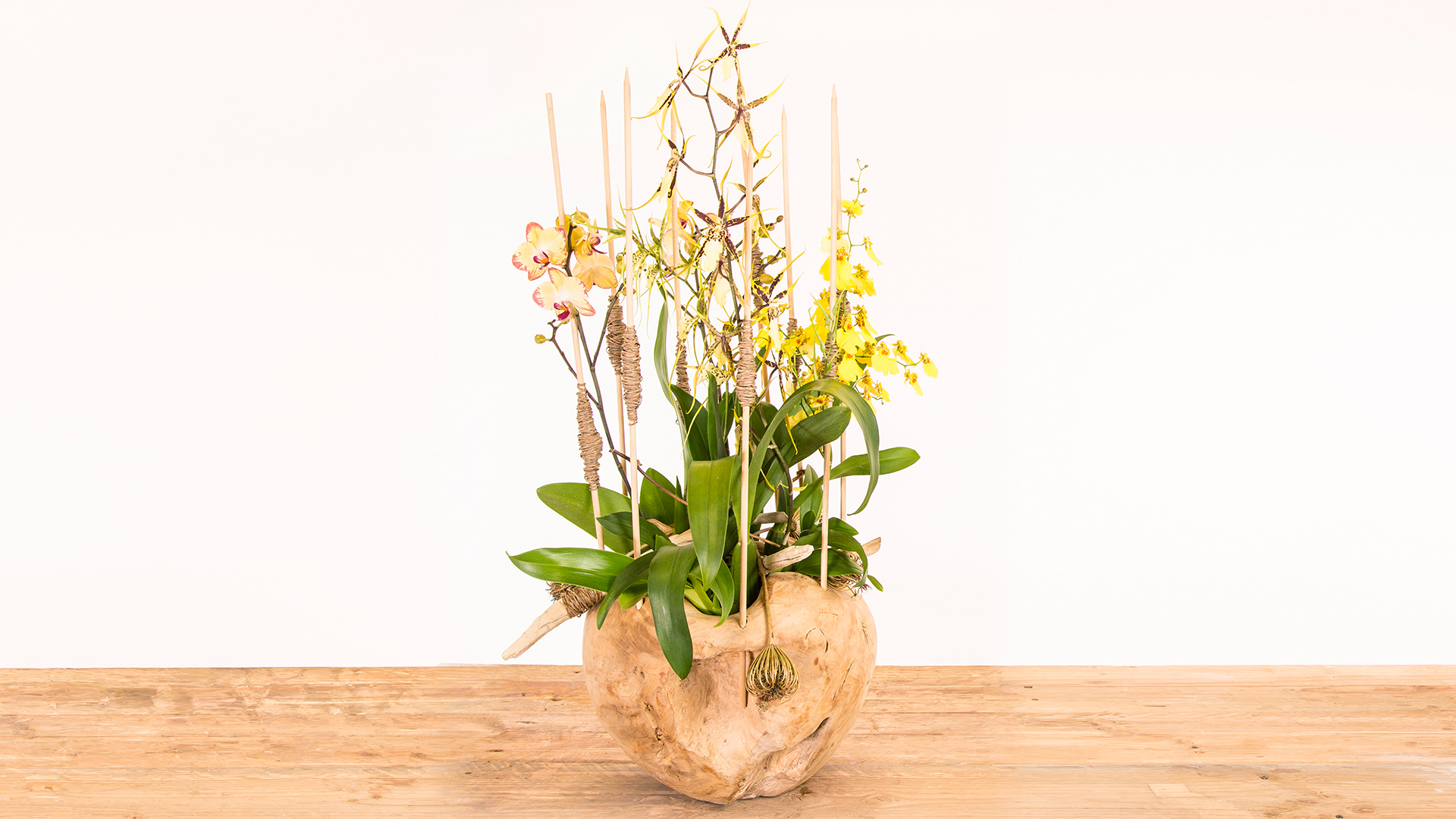 Pim laat zien dat orchideeën in teakhout zorgen voor een natuurlijke uitstraling.