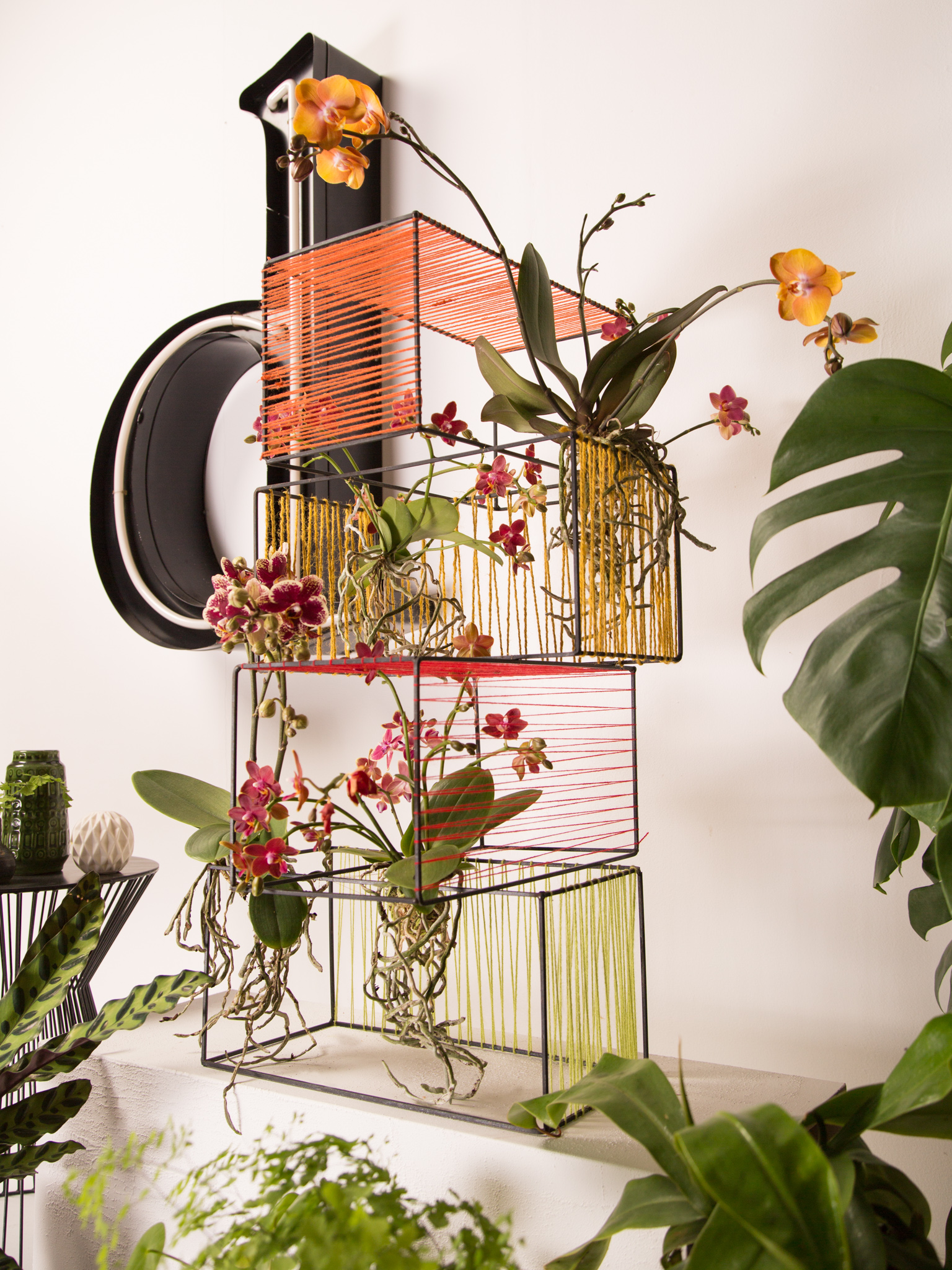 Orchideeën in een 'urban jungle' stijl interieur? Goed idee! De Phalaenopsis is in al haar verschijningsvormen een mooie toevoeging aan je groene woonkamer. Ze zorgen voor wat spannende kleur tussen al dat frisse groen. Om ze tussen al die grote groene planten extra op te laten vallen, creëerde Chantal Vollenbroek een mooi arrangement waarbij ze verschillende soorten Phalaenopsis groepeerde en in een gaaf zwart frame plaatste. Maar ook losse orchideeën doen het prima. Neem bijvoorbeeld de witte 'Artisto' in het potje op hoge pootjes. Tegen een mooi gekleurde wand komt deze helemaal tot zijn recht!