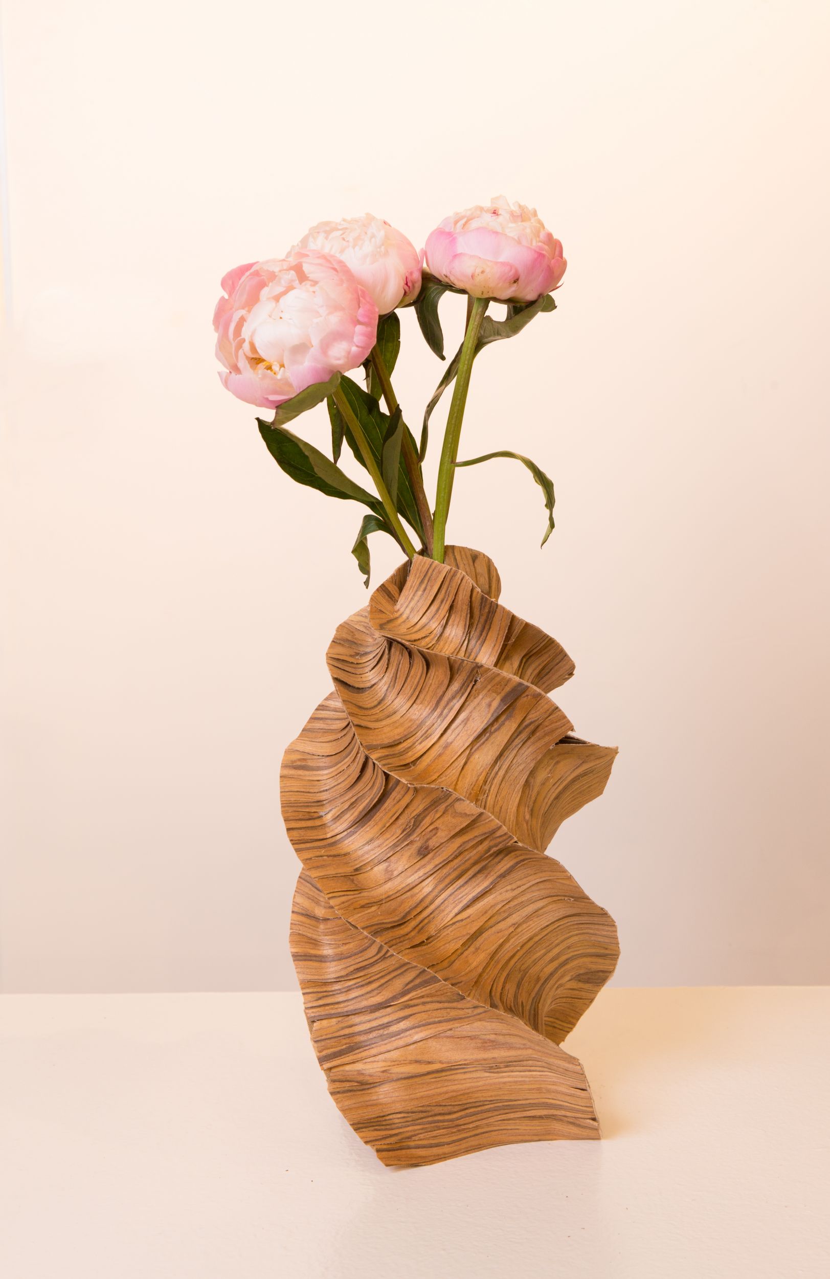 Pioenrozen zijn van zichzelf al zo mooi dat ze niet veel meer nodig hebben dan een mooie vaas! Deze schoonheden kregen een gepimpte vaas; oude saaie vazen zijn omgetoverd tot iets bijzonders met behulp van fineer, kurk en hete lijm.