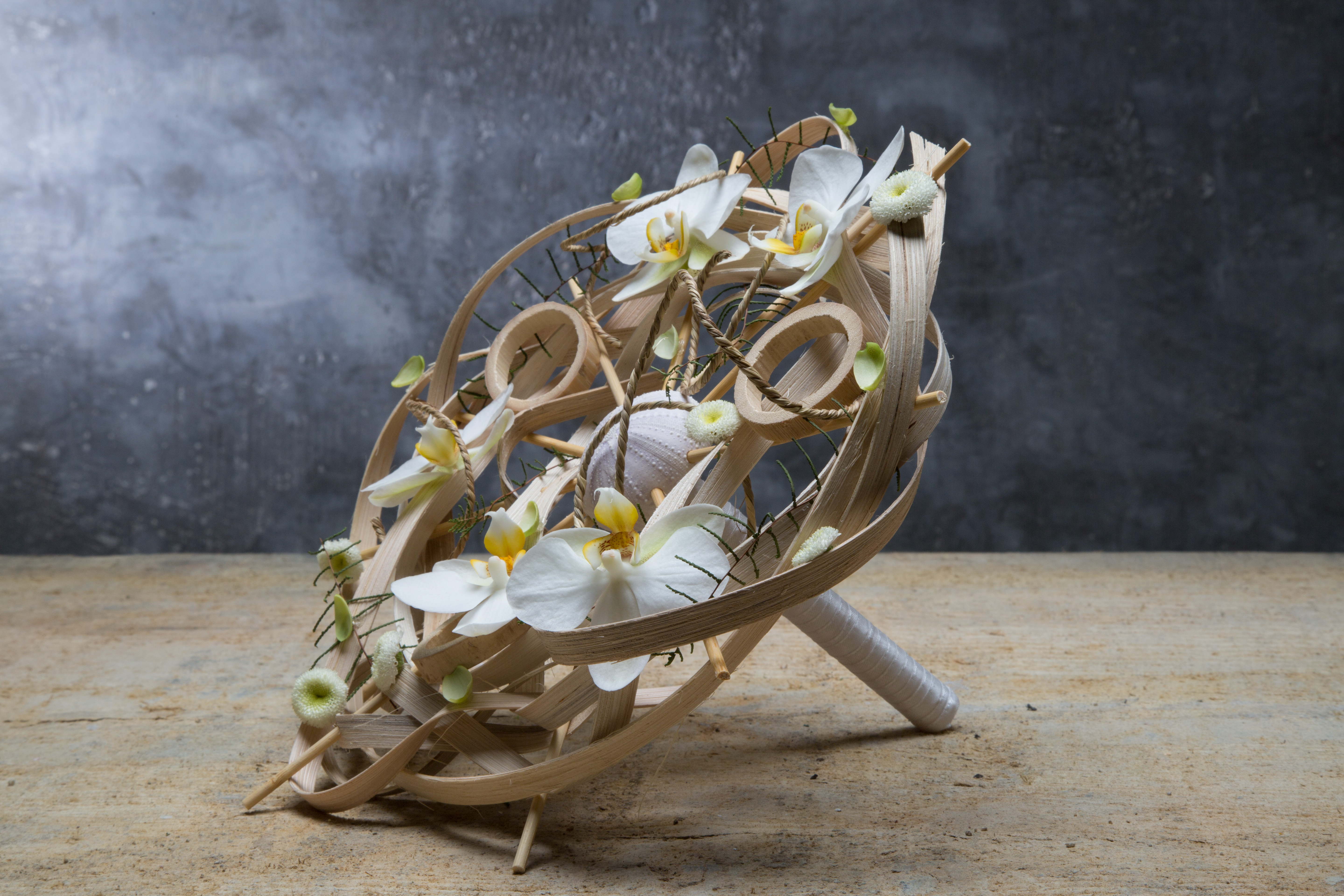 The orchids are powered by Opti-flor and confirmed ons the base with Oasis cold glue.