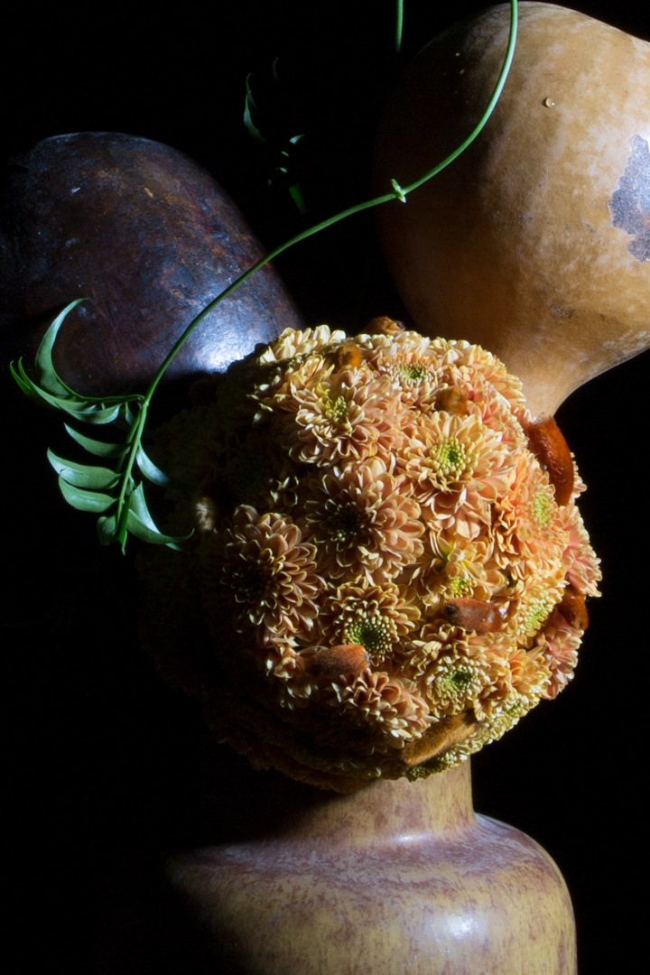 Roos van Unen heeft rouwbloemwerk in een vaas gemaakt. Het vaasarrangement laat zien dat rouwbloemwerk niet altijd de vorm van een bloemstuk of kistbekleding te zijn. Rouwbloemstukken kunnen ook een mooi sereen stilleven zijn, gepresenteerd in een mooie vaas.
