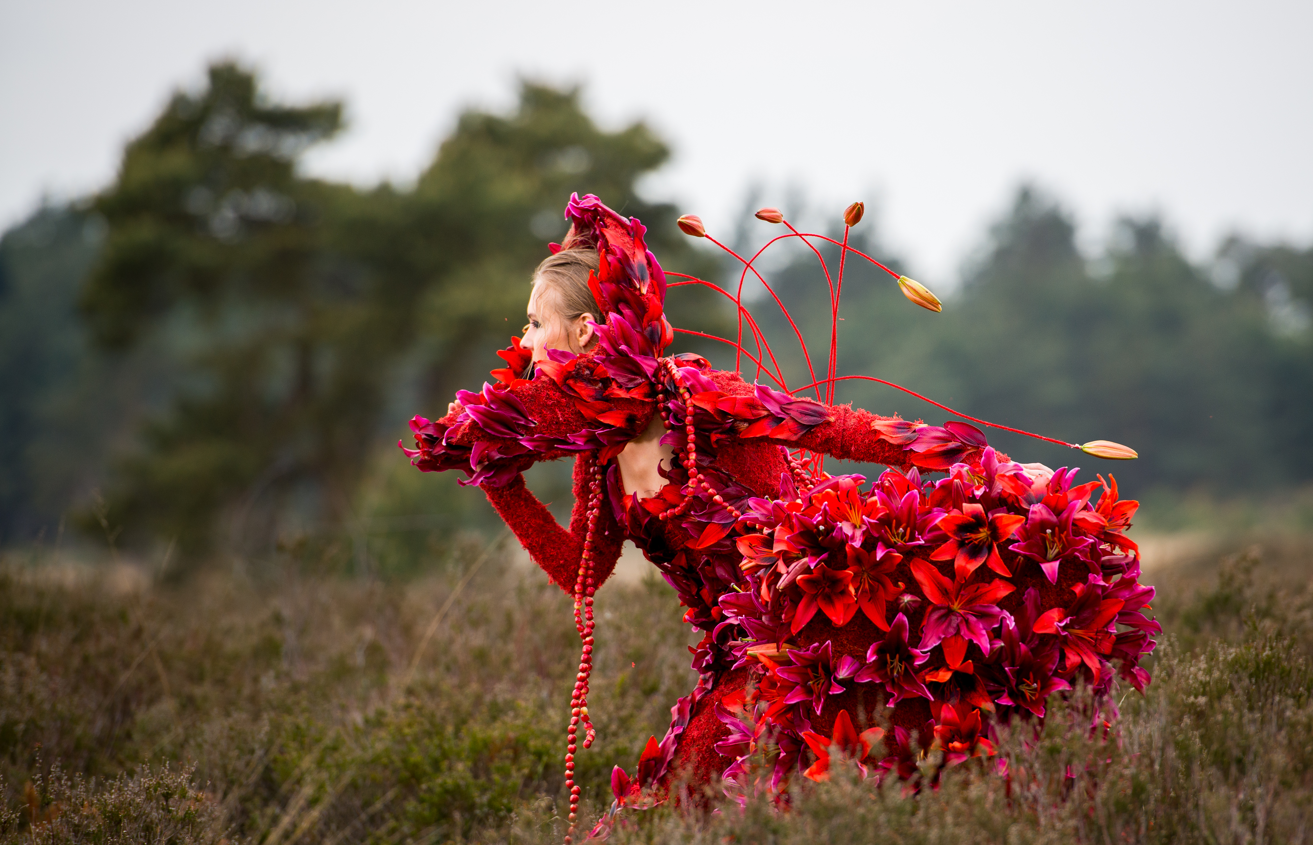 Haute couture jurk met lelies door Pim van den Akker voor YourLily.