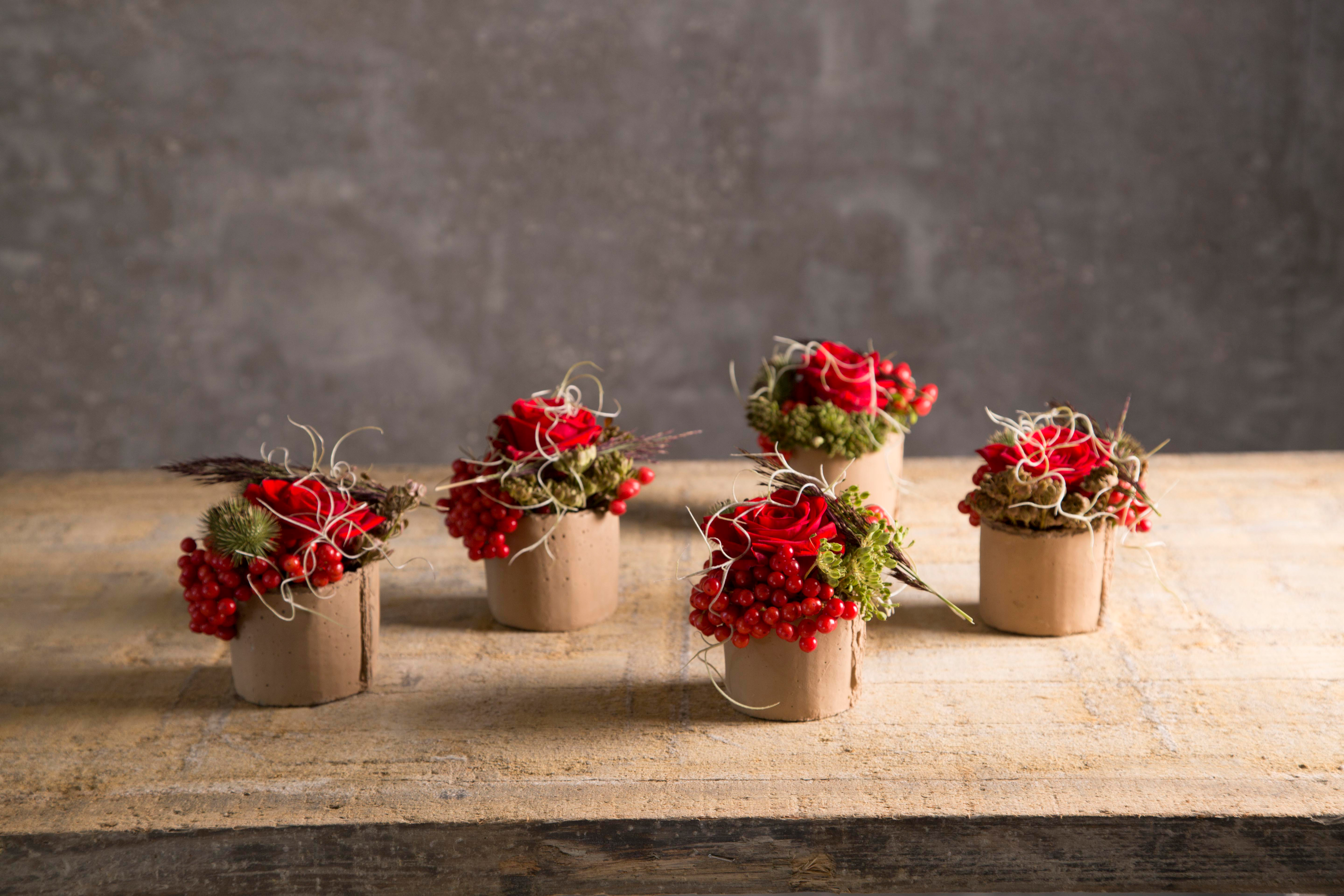 Delicate tafeldecoratie met prachtige Red Eagle® rozen, perfect om de kerstdis mee aan te kleden!