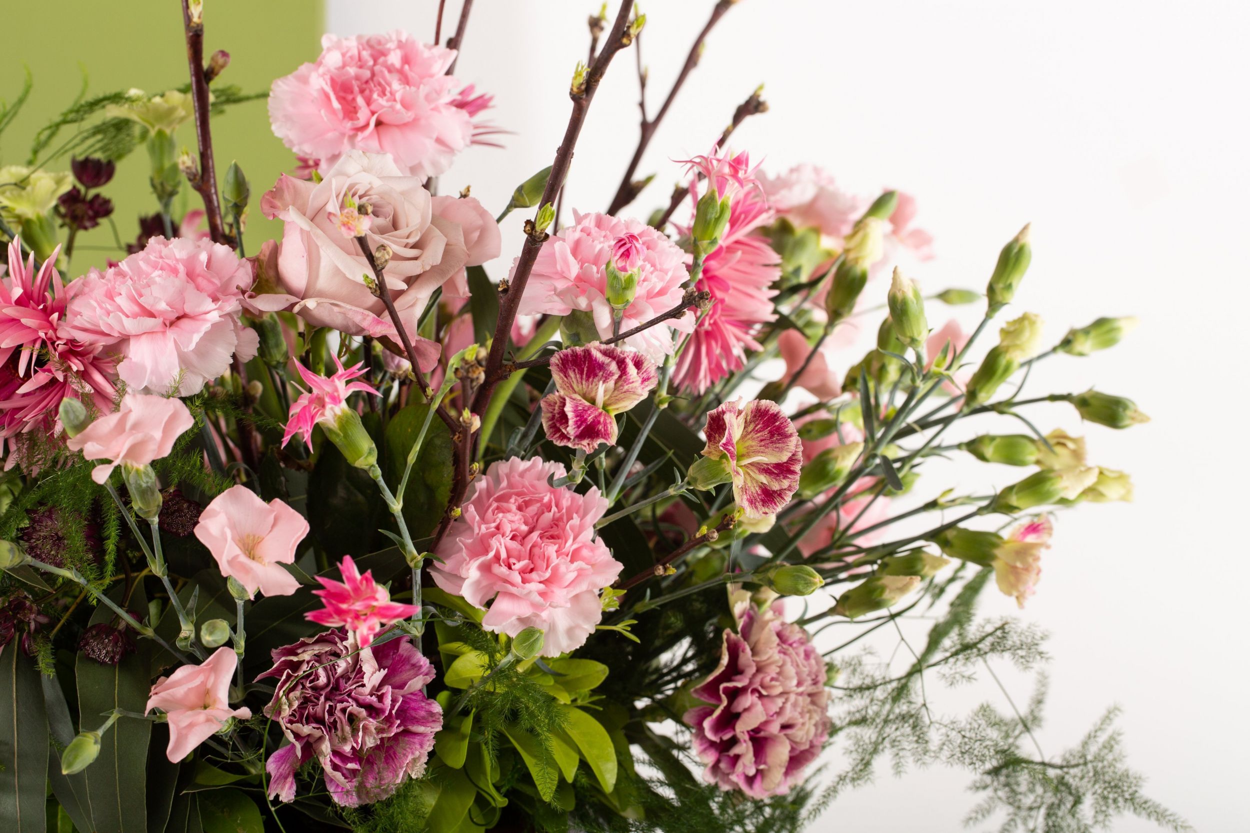 Dit roze #TrendyDianthus (K)Anjerboeket zorgt voor een instant-glimlach! Roos van Unen koos voor een vrolijke mix van roze Dianthus variëteiten; van standaard, tot tros en effen kleuren tot tweekleurige soorten. Dianthus laat zich mooi combineren met andere bloemen en groene materialen. Roos van Unen vond deze combinatie in Love Lace rozen, roze Mi Twisti Iggy mini Gerbera's, bloesemtakken (Prunus), Astrantia, Asparagus, Choisya en Eucalyptus. Een Anjer boeket zeer geschikt om iemand mee te bedanken of als Moederdagboeket! Pas je vaaskeuze aan op de kleurstelling, zoals deze donkerroze Dutz vaas.