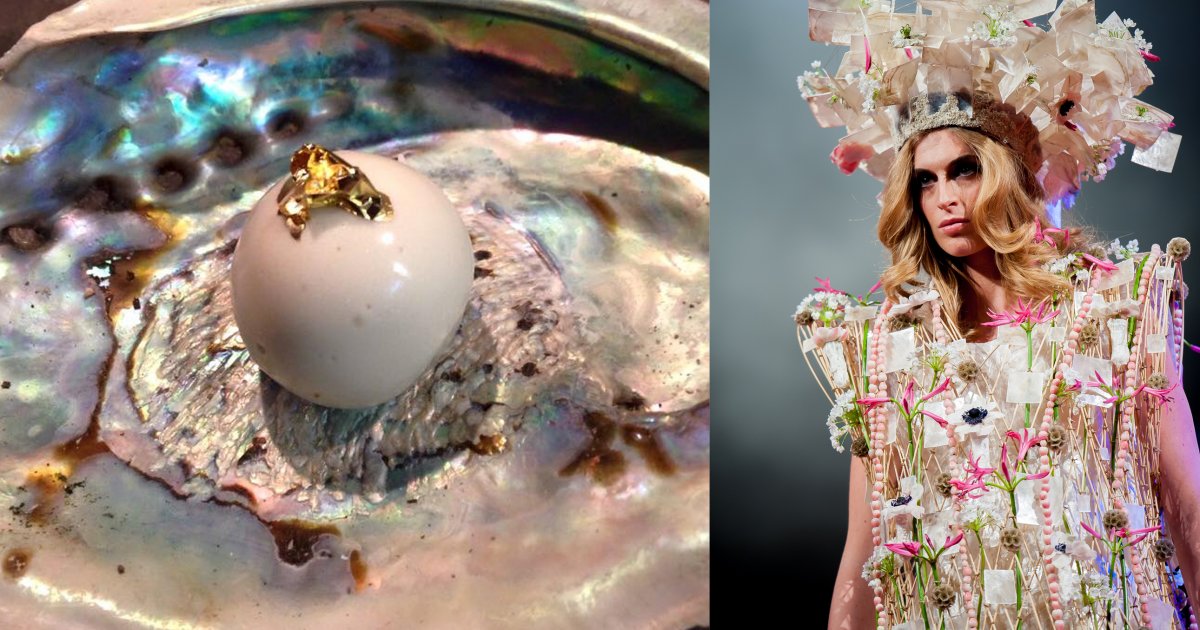 Zo werd er een jurk van geslepen oesterschelpen geshowd, waarbij de genodigden onderwijl een ‘oesterparel van oestervlees, room en bladgoud’ kregen geserveerd. En kon men onder het genot van een stukje ‘op eikenhout geroosterde parelhoen op een prikkertje van parelhoenveer’, een design bewonderen gemaakt van datzelfde eikenhout en parelhoenveren. Mode, bloemsierkunst en gastronomie vloeiden tijdens deze Food Floral Fashion Show vlekkeloos in elkaar over.